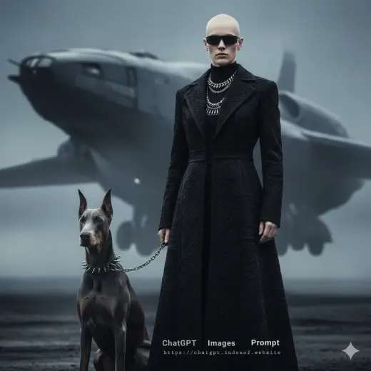 The "Dystopian Sci-Fi" prompt represents the cutting edge of fashion photography, blending brutalist industrial environments with high-concept, androgynous styling. This aesthetic—often referred to as "Cyber-Noir" or "Tech-Wear Editorial"—moves away from bright neon tropes and instead focuses on "Matte Black" minimalism and architectural clothing. By pairing a powerful human figure with a Doberman, the prompt utilizes a classic visual shorthand for protection, status, and disciplined power, creating a narrative of a leader in a post-civilization landscape.