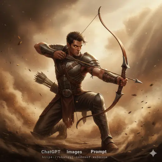 The "Heroic Archer" prompt is a masterclass in "Kinetic Composition," capturing a character at the absolute peak of physical tension. By utilizing a "Low-Angle Perspective," the prompt elevates the archer to a mythic status, making them appear dominant over the battlefield. This aesthetic relies on "Volumetric Atmosphere"—using swirling dust and smoke to create a sense of environmental chaos that contrasts with the subject's "Intense Focused Expression." It is designed to mimic the high-fidelity character splashes seen on ArtStation or the promotional key art for Triple-A fantasy titles like The Witcher or Horizon Zero Dawn.