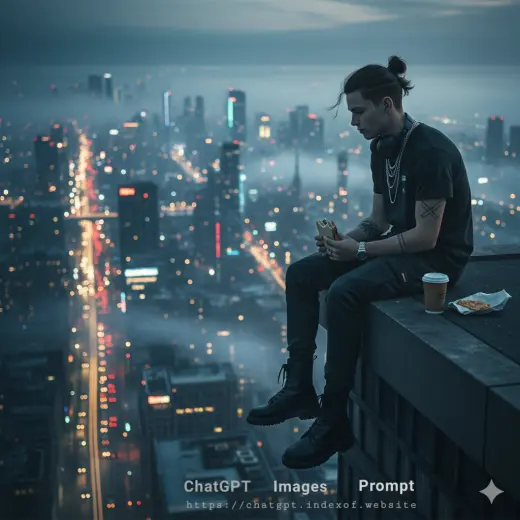 The "Rooftop Solitude" aesthetic is a powerful trope in futuristic storytelling. It captures the contrast between the scale of a massive, glowing megacity and the intimate, mundane reality of a single individual. By focusing on "low-life" details—like a half-eaten sandwich and a coffee cup—this prompt achieves a level of grounded realism that separates professional AI art from generic sci-fi renders.