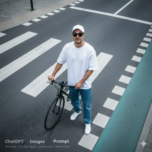 This image prompt is designed to create a modern, cinematic street-style photograph captured from a top-down aerial perspective. It focuses on contemporary urban fashion, confident body language, and strong geometric composition, making it ideal for editorial-style visuals. Using AI tools such as ChatGPT or Gemini AI, this prompt helps generate ultra-realistic images that feel professionally shot in a real city environment.